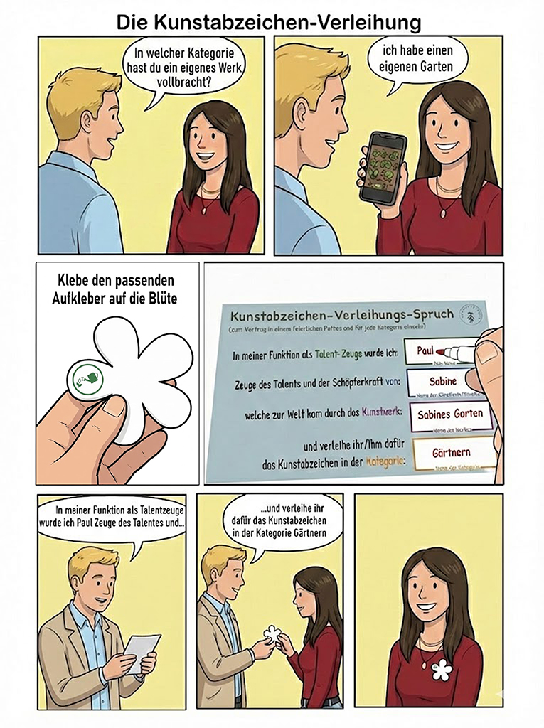 Ähnlich wie das Sportabzeichen – doch statt sportlicher Leistungen werden hier kreative Fähigkeiten ausgezeichnet. Es geht um künstlerisches Schaffen, Kreativität und den Ausdruck des menschlichen Gestaltungswillens.